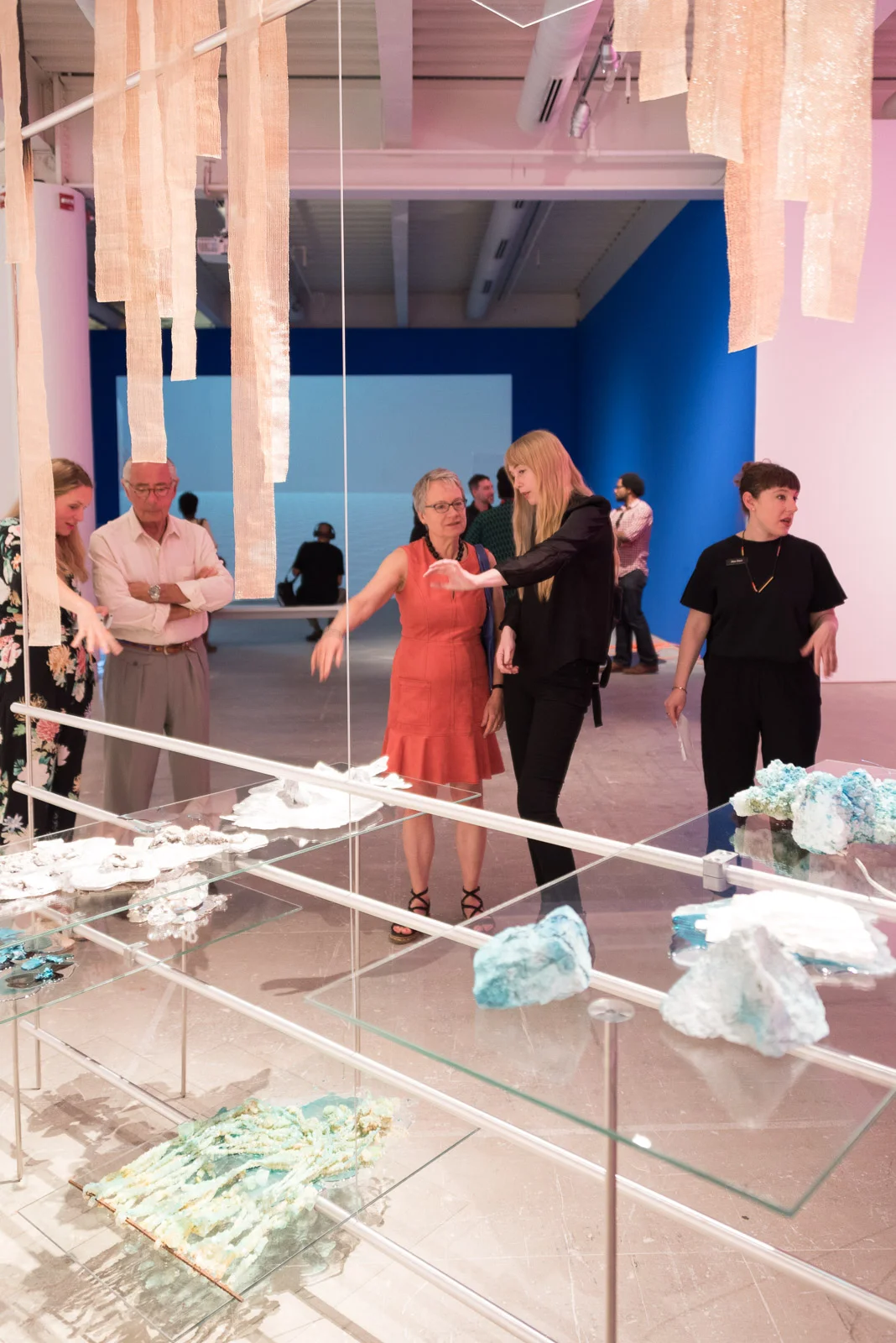 Artist and visitor interaction at the opening: